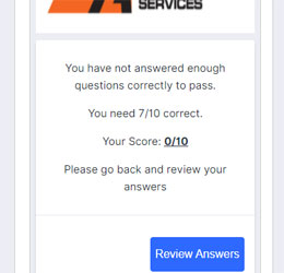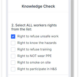 3 Worker answers each knowledge check question to confirm they understand all responsibilities and rules for the site.