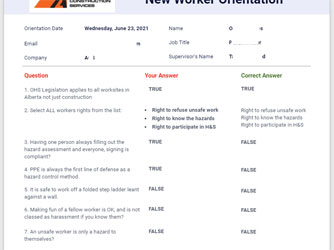 New Employee Safety Orientation is a digital safety form to deliver safety training and record each employees' company safety orientation before they start work.